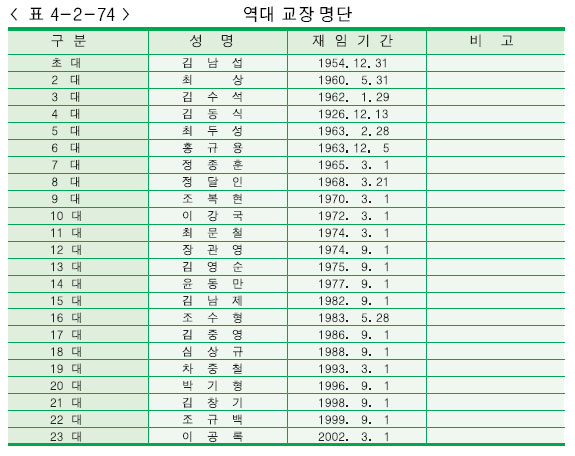 4) 역대 교장 명단